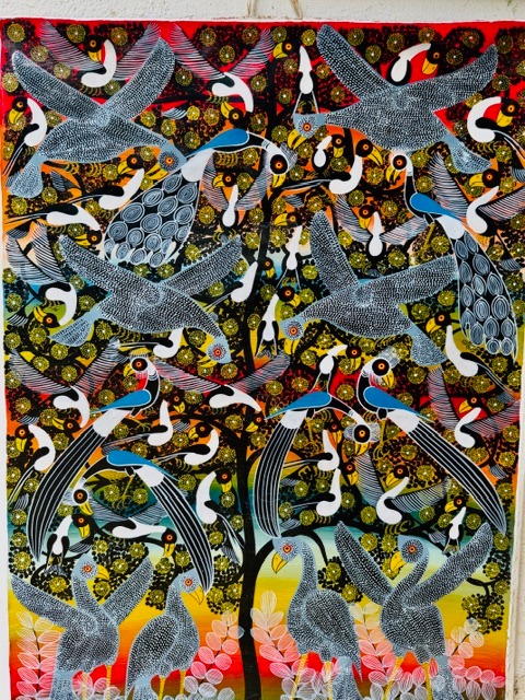 Our visit to Arusha centered on the Museum of Natural History, the huge Public Market and Arusha Cultural Center. It was also my first opportunity to buy art. Tinga Tinga paintings are a distinctive East African art style that originated in Tanzania. Arusha is one of the country’s artistic hubs. The paintings are easily recognized for their brilliant colors, naive forms, and playful depictions of animals and local life. I bought 6 incredibly beautiful paintings from 3 artists. The canvases are now safely rolled up in cardboard tubes ready to go back home.